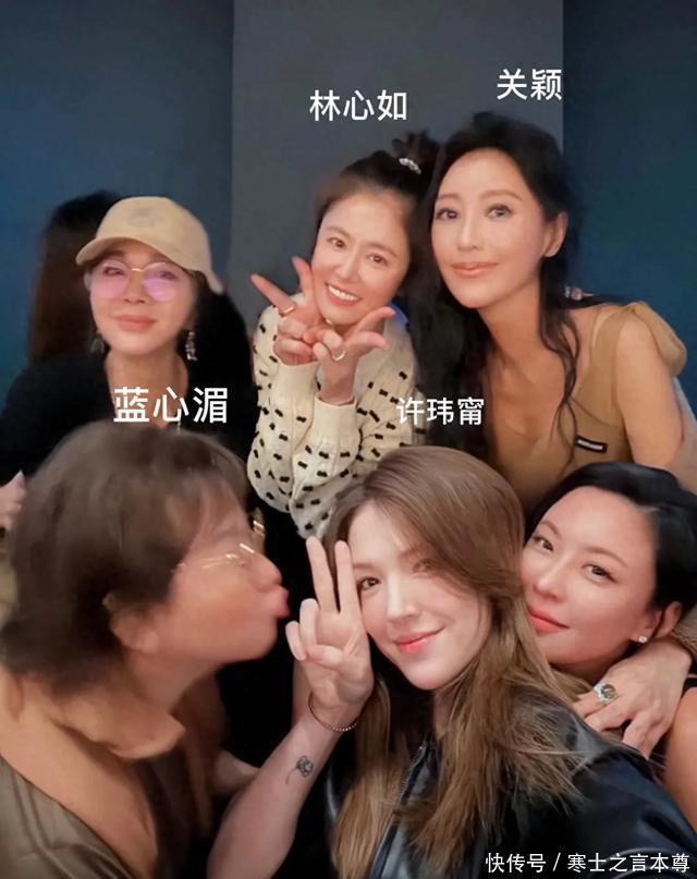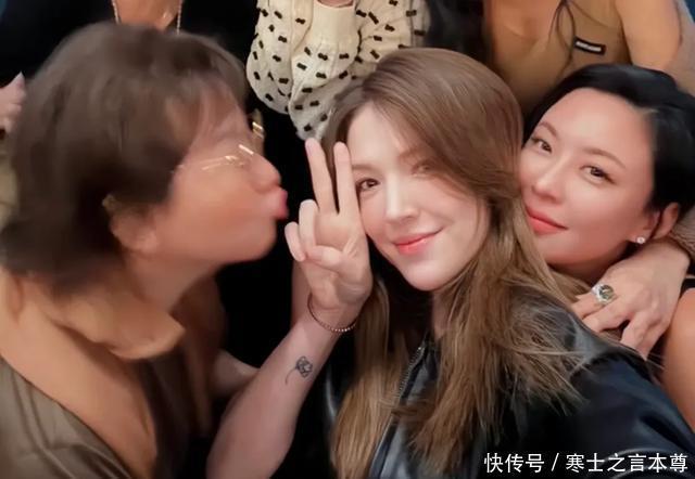 许玮甯身穿黑色皮衣,打扮的很帅气。合影的时候,蓝心湄还摆出要亲她的pose,蓝心湄很喜欢许玮甯。许玮甯生完孩子之后变得更漂亮了,她皮肤很白,在一群女人中间美的很突出。许玮甯要和邱泽办婚礼了,她的皮肤白皙透红,处处都透着喜悦感。